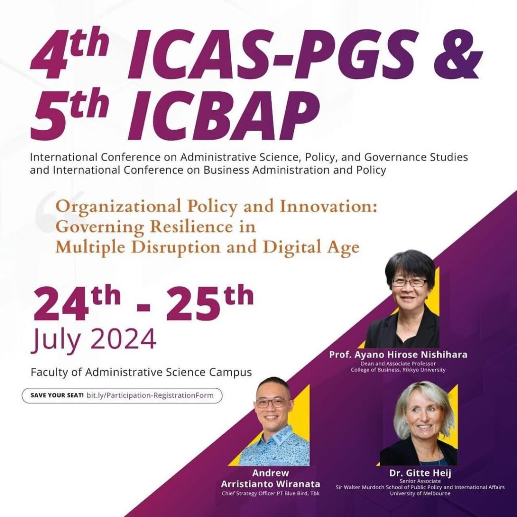 01 June 2025 Administrator Strategic Publishing with SciVal: Elevating Research Visibility and Citations 01 June 2025 Administrator ACADEMIC WEBINAR 01 May 2025 Administrator WEBINAR DAN MINI WORKSHOP “Steady State and Time-Resolved Flourescence Spectroscopy” 01 June 2024 Administrator Harmony in Diversity: Navigating Multi-dimensional Realities in Management, Education, IT, and Social Science 01 June 2024 Administrator The 4th International Conference on Administrative Science, Policy, and Governance Studies (ICAS-PGS 2024) 01 May 2024 Administrator International Symposium of Technologies and Innovation for Material Circulation – Osaka University ASEAN Campus SDGs